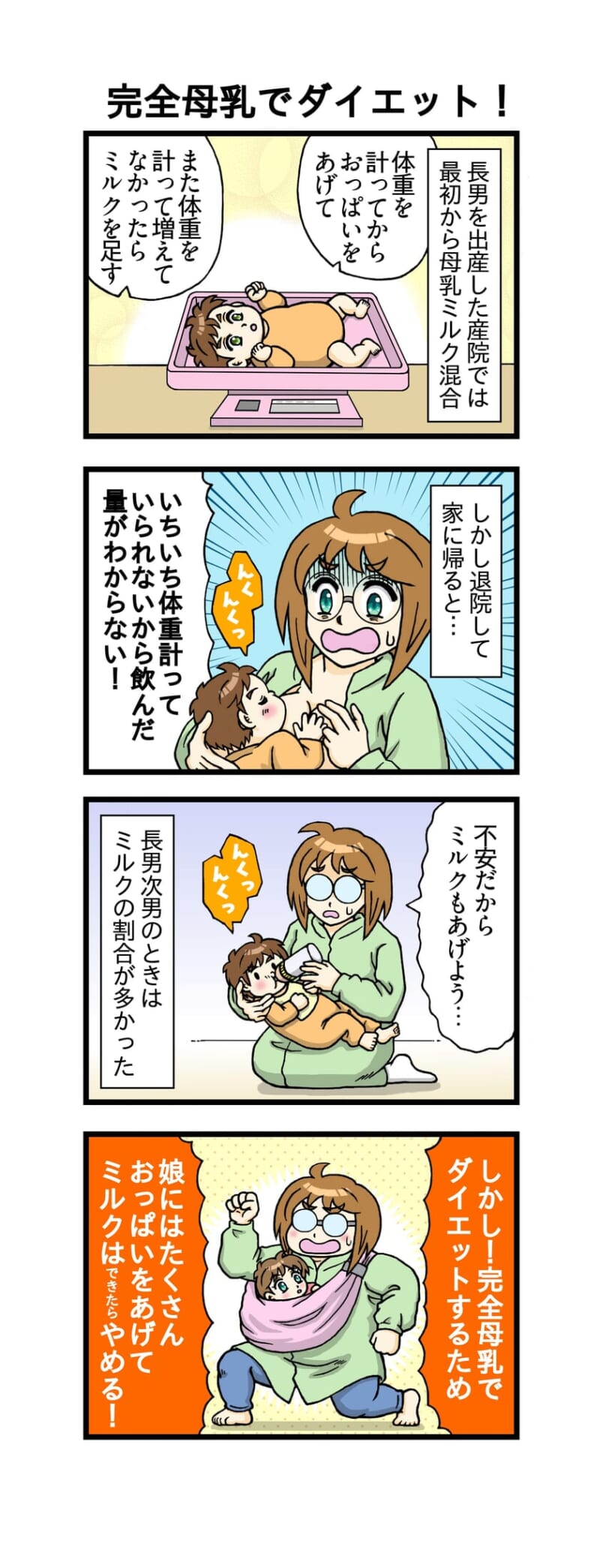 スリムなママ友が完全母乳で痩せたと聞いて、自分も完母育児でダイエットしよう!と決意します。