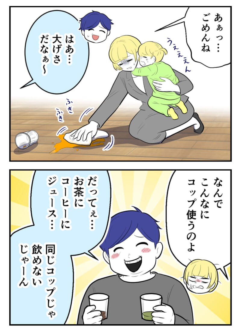 「あいつ、どこ行った?」リビングに散らばるコップの数々…キレる妻に夫が言い出した“謎の理屈”【私の義母が神すぎる! #8】 by 尾持トモ