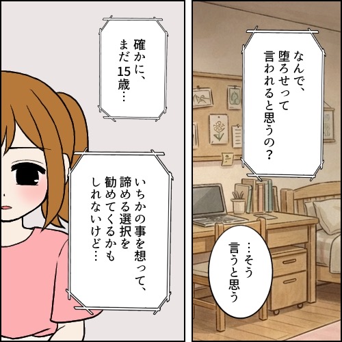 <広告> 「堕ろせって言うよね」母に言えない16歳の妊娠…友達の言葉が突き刺さる【16歳、命と向き合うとき #37】by ふくふく ‹ 前の話 一覧 ふくふく ‹12› 2026/04/10 続きます <広告> ‹12› 【16歳、命と向き合うとき】 ▶ 他の話も読む ★フォローしてふくふくさんの最新記事をチェック! ‹ 前の話 一覧 作者: ふくふく > 作者ページ > SNS ふくふくさんの電子書籍 16歳、命と向き合うとき なんでお金を盗んだらいけないの? 療育にいた!とんでもママ ふくふくさんの他のシリーズを読む なんでお金を盗んだらいけないの? 療育にいた!とんでもママ 夫にオンラインゲームをやめさせた話 女の子, 高校生 16歳、命と向き合うとき, ふくふく <広告> 本記事は個人的体験談などに基づいて作成されており、脚色なども加えられている場合もあり、必ずしも各読者の状況にあてはまるとは限りません。この記事の情報を用いて行動される場合、ご自身の責任と判断により対応いただけますようお願い致します。 尚、記事に不適切な内容が含まれている場合はこちらからご連絡ください。 関連記事 関連記事: 「そんな事も知らないの?」同じ部屋にいるのに噛み合わない二人…それぞれの本音は【妻が突然家を出て行きました #49】 by ずん 関連記事: 「私は母親なのに…!」再び現れた義母に息子がはっきり示した一線【夫婦ふたりじゃダメですか? #39】 by 尾持トモ 関連記事: 少年団を「庶民の習い事」扱い?初対面ママの言葉が強烈すぎる…!【続!貧乏認定してくるママ友#3】by すじえ 関連記事: 「俺が誘ってやらないと」調子に乗る男(34歳)…11歳年下の女子大生をランチに誘った結果【自称・いい男の恋活♡事情 #4】by ちゅん 関連記事: 無事に卒園式を終え、娘にも心境の変化が…?【小学校入学前の不安⑳】 by ぴなぱ 関連記事: 娘を尾行せよ!暗躍のボディガード【そのおつかいデビューちょっと待った!③】 by 金星 関連記事: 初顔合わせの日、ピアノの先生が娘にした質問【子供の習い事⑪】 by あぽり 関連記事: 内面に矛盾を抱える「HSS」 感情反応が強い子は…【うちの長女は多分HSC ⑲】 by とも 関連記事: そこだけは違うのか!?開いている扉が気になる娘の唯一の例外 by 三都
