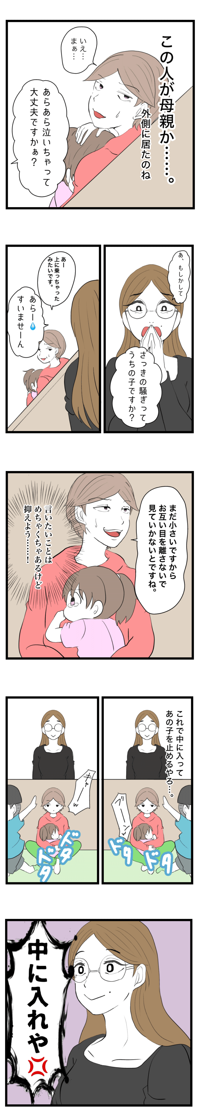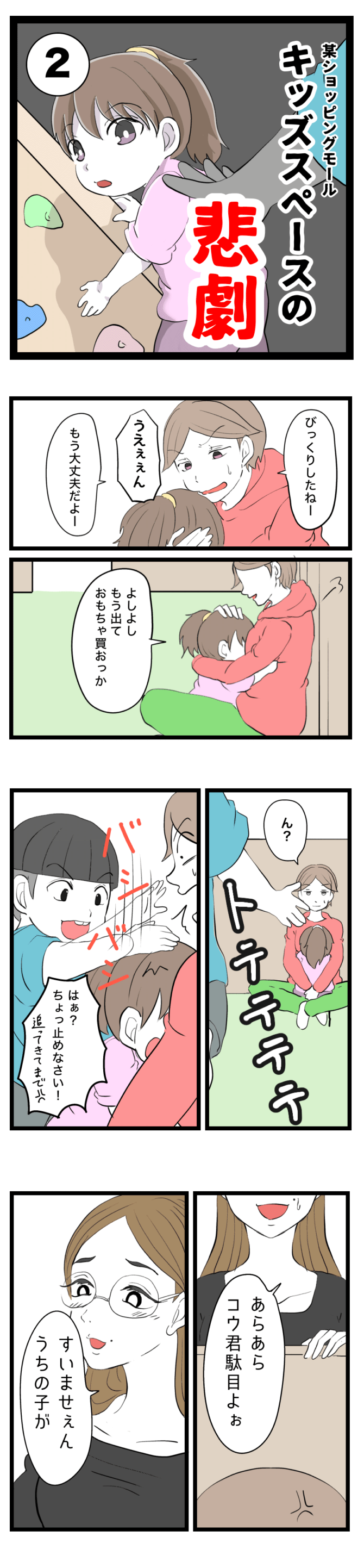<広告> 「あらあら、すいませぇん」キッズスペースでやりたい放題の子…相手親が謝罪直後にまさかの行動【キッズスペースの悲劇~総集編~】 by なしえマミ~ ‹ 前の話 作家一覧 なしえマミ~ ‹12› 2026/03/31 このお話は最後までまとめ読みができます <広告> ‹12› ★フォローしてなしえマミ~さんの最新記事をチェック! ‹ 前の話 作家一覧 作者: なしえマミ~ > 作者ページ > SNS なしえマミ~さんの電子書籍 キッズスペースの悲劇 問題児ママの謝罪のお菓子 モンペ保護者に執着された先生 なしえマミ~さんの他のシリーズを読む モンペ保護者に執着された先生 問題児ママの謝罪のお菓子 キッズスペースの悲劇 トラブル, ママ, 子育て なしえマミ〜, キッズスペースの悲劇~総集編~ <広告> 本記事は個人的体験談などに基づいて作成されており、脚色なども加えられている場合もあり、必ずしも各読者の状況にあてはまるとは限りません。この記事の情報を用いて行動される場合、ご自身の責任と判断により対応いただけますようお願い致します。 尚、記事に不適切な内容が含まれている場合はこちらからご連絡ください。 関連記事 関連記事: 「今やってるから待ってて!」濡れた髪で40分放置の美容院 …その後の対応、普通じゃない【美容院に行ったのに施術しないで帰らされた話#4】by まめごママ 関連記事: 「あんたを利用したい」不遜な態度で責め立てていた男の真意と過去が明らかに…!?【ママ、辞めます。 #50】by 星田つまみ 関連記事: 「うちの妻が困ってるようですが?」付きまとうママ友の夫に放ったひと言…次の瞬間【我が家に依存する迷惑親子 #47】by みつけまま 関連記事: オナラじゃない!と娘が言い張る音の正体は?!【今日もみかんとほっこり日記】第3話「最近のブーム」⑪ by まるいまよ 関連記事: 家族以外の人の膝に乗ってはダメ!息子に警戒心を持つように伝えるが…?【男の子なのに…?息子が性犯罪者に狙われました⑨】by ネギマヨ 関連記事: ニュースで見つけて母大興奮!子供たちにさせたい体験学習【キッズフリマ①】 by あゆたろう 関連記事: 午前3時、キャラ弁作成中に予想外のハプニング発生!【保育園最後のお弁当④】 by へー子 関連記事: 無作法なママ友対策!勝手をさせないため事前にお願いしたこと【我が子を卑下して輪に入ろうとしてくるママ友のお話⑳】 by しろみ