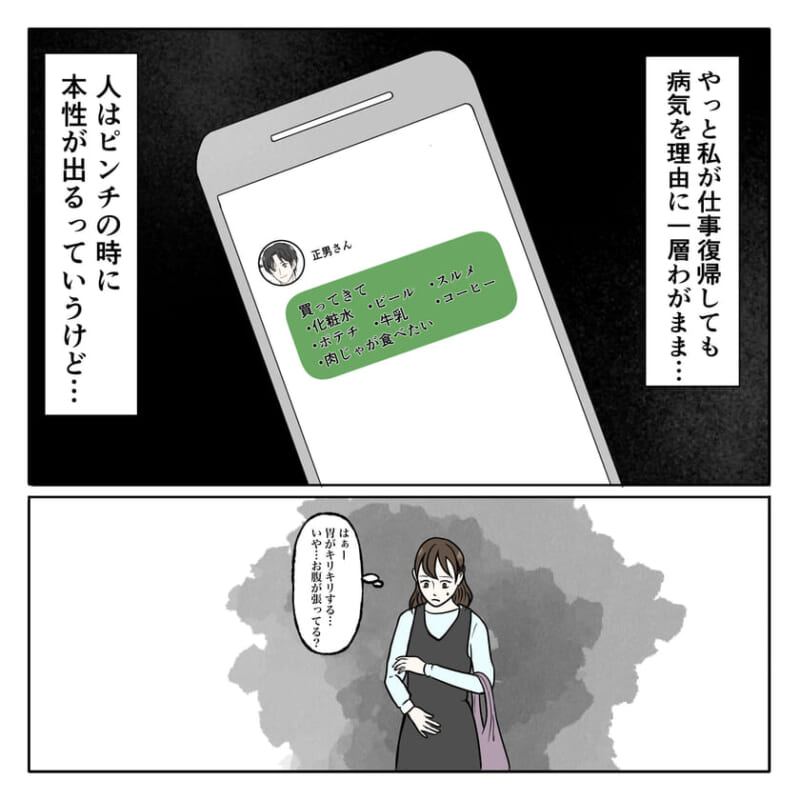 <広告> 「お前、看病しないつもり?」37度台で元気なのに…妊娠中の妻を引き留めた夫に絶句【優モラ夫の化けの皮を剥がしてやった話 #11】 by ままぽぽ ‹ 前の話 一覧 ままぽぽ ‹12› 2026/04/07 <広告> ‹12› 【優モラ夫の化けの皮を剥がしてやった話】 ▶ 他の話も読む ★フォローしてままぽぽさんの最新記事をチェック! ‹ 前の話 一覧 作者: ままぽぽ > 作者ページ > SNS ままぽぽさんの電子書籍 マミーブレイン スマホ依存ママの代償 優モラ夫の化けの皮を剥がしてやった話 ままぽぽさんの他のシリーズを読む 優モラ夫の化けの皮を剥がしてやった話 スマホ依存ママの代償 マミーブレイン 妊娠, 旦那, 病気 ままぽぽ, 優モラ夫の化けの皮を剥がしてやった話 <広告> 本記事は個人的体験談などに基づいて作成されており、脚色なども加えられている場合もあり、必ずしも各読者の状況にあてはまるとは限りません。この記事の情報を用いて行動される場合、ご自身の責任と判断により対応いただけますようお願い致します。 尚、記事に不適切な内容が含まれている場合はこちらからご連絡ください。 関連記事 関連記事: 『私を産んで後悔した事ある?』シングルマザーの母に聞いた一言。その答えは【16歳、命と向き合うとき #36】by ふくふく 関連記事: 「早く食べないお前が悪い」妻の朝食を食べた夫の“ふざけた言い分”【専業主婦だけど、食い尽くし夫と離婚します #10】 by しろみ 関連記事: 「こんな時、ママはどうしてた…?」自称イクメン夫、ワンオペ中の“娘の異変”に固まる【妻と身体が入れ替わった話ー俺ってイクメンだよね?ー#11】 by あおば 関連記事: 「ずるいって言われたの…」PTAを辞めた母に娘が告げた悲しいひと言。決断の代償は【PTAをやめた日 #4】 by かお 関連記事: 元夫に反撃開始!その時、懲りない彼が“新たに企んでいたこと”とは【自称・「いい男」と結婚しました #41】by ちゅん 関連記事: 「今すぐやめて!」冷やせば下がると笑顔で話す夫に母が絶叫した理由とは【看病センスゼロ夫との攻防 #2】 by りんりん 関連記事: 「もう来ないで…」訪問を拒否する妻に“思わぬ誘い”。夫が笑顔で勧めてきたことは【宗教2世と結婚しました #72】 by ぷっぷ 関連記事: 「妊娠したよ」の報告に夫が放った“まさかの一言”…妻が言葉を失った“理由”とは【赤ちゃん夫 #7】 by 紙屋束実