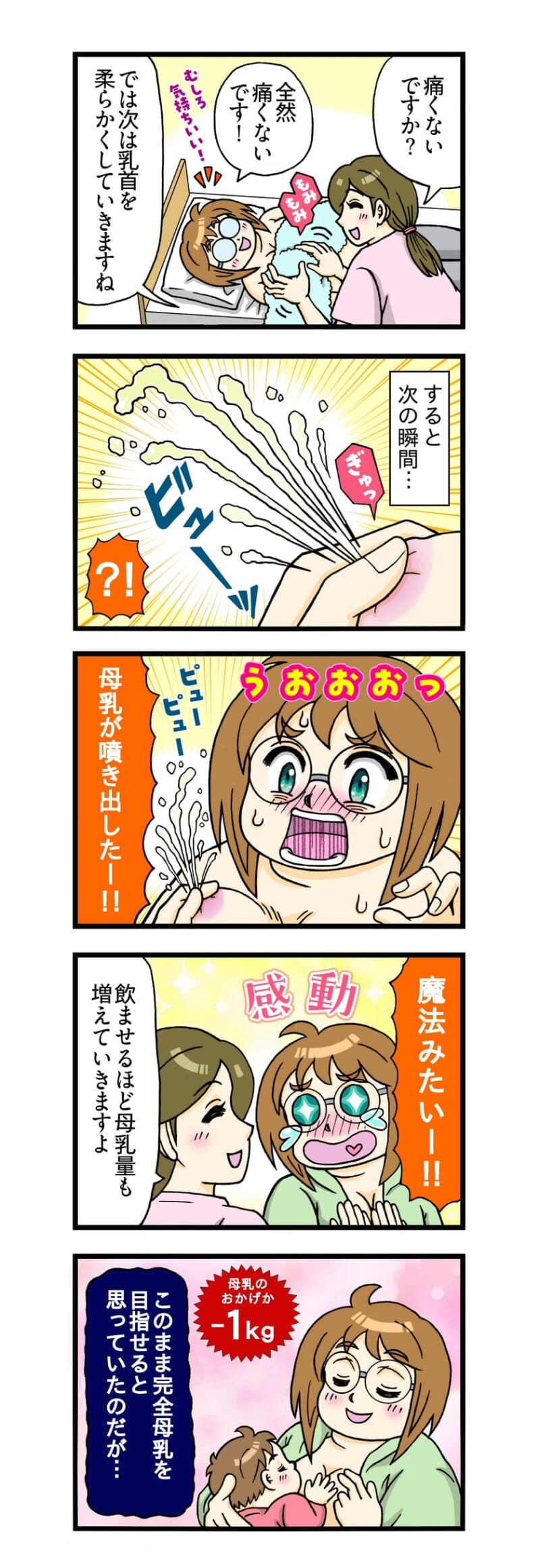 「本当に出るの?」不安のまま受けた母乳マッサージ…施術直後にまさかの反応【完全母乳でダイエット! #3】 by かめのこ