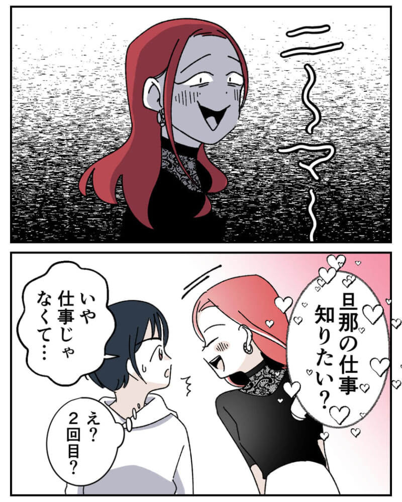 違和感を感じながらも答えていると、さらに「うちの旦那様の仕事、知りたい?」と返されて ――。