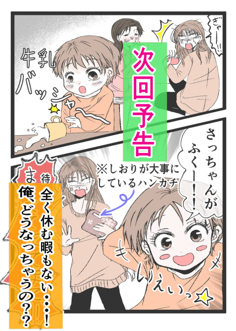 <広告> 「旦那は頼りない」に呆然…妻を泣かせた自覚ゼロ夫が放った「俺は手伝ってるのに?」【妻と身体が入れ替わった話ー俺ってイクメンだよね?ー#16】 by あおば ‹ 前の話 一覧 あおば ‹12› 2026/04/24 続きます!読んでいただきありがとうございます! 次回の更新予定は4月27日です。 また読んでもらえたら嬉しいです✨ <広告> ‹12› 【妻と身体が入れ替わった話】 ▶ 他の話も読む ★フォローしてあおばさんの最新記事をチェック! ‹ 前の話 一覧 作者: あおば > 作者ページ > SNS あおばさんの電子書籍 妻と身体が入れ替わった話 コロナ禍でのワーママ奮闘記!!! あおばさんの他のシリーズを読む 妻と身体が入れ替わった話 コロナ禍でのワーママ奮闘記!!! VSおばあちゃん助産師~ちょっと雑だよ助産師さん!! ママ, 子育て, 家事, 旦那 あおば, 妻と身体が入れ替わった話 <広告> 本記事は個人的体験談などに基づいて作成されており、脚色なども加えられている場合もあり、必ずしも各読者の状況にあてはまるとは限りません。この記事の情報を用いて行動される場合、ご自身の責任と判断により対応いただけますようお願い致します。 尚、記事に不適切な内容が含まれている場合はこちらからご連絡ください。 関連記事 関連記事: 「頼み事してもキレないの?」ママ友の夫は当たり前なのに…うちはどうして怒る?【妻が突然家を出て行きました #51】 by ずん 関連記事: 「え、隠し子?」会社前で子どもに“パパ”と呼ばせた女…次の瞬間、現れたのは【夫婦ふたりじゃダメですか? #43】 by 尾持トモ 関連記事: 「大したこと出来ないでしょ」嫁を笑う義母…義父が放った言葉に凍り付く【優モラ夫の化けの皮を剥がしてやった話 #13】 by ままぽぽ 関連記事: 習い事をしていて良かった事。高校生の息子に言われた言葉とは?【子供の習い事⑥】 by あぽり 関連記事: 息子がいじめをしている?!学校の先生からかかってきた電話【息子がいじめ加害者?!~母、大混乱~①】 by まめねこ 関連記事: 42歳で初出産。高齢出産ママが心配だったことは・・ by あつこ 関連記事: 思いがけず、ママがやっちゃった…! by かわいかあこ 関連記事: わからないことだらけのトイトレ。2歳半で始めたけれど・・?!【2歩進んで3歩下がるトイトレ①】 by ひつじ
