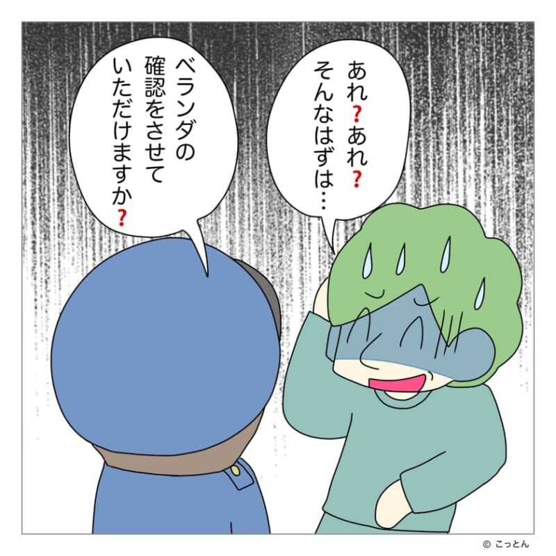 雨の中、ベランダに出されたまま妻は動けない。室内では何事もなかったように時間が流れていく。