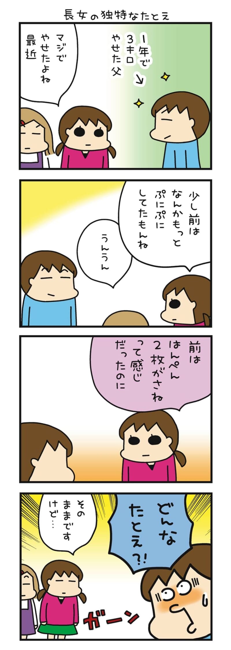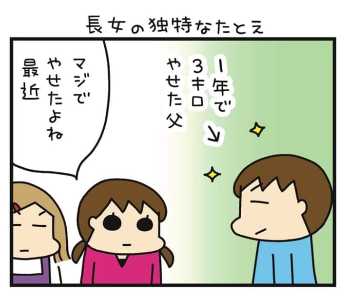 「マジでやせたよね」娘の一言…例え話のズレに固まる【うちはおっぺけ~3姉妹といっしょ173話-5】by 松本ぷりっつ