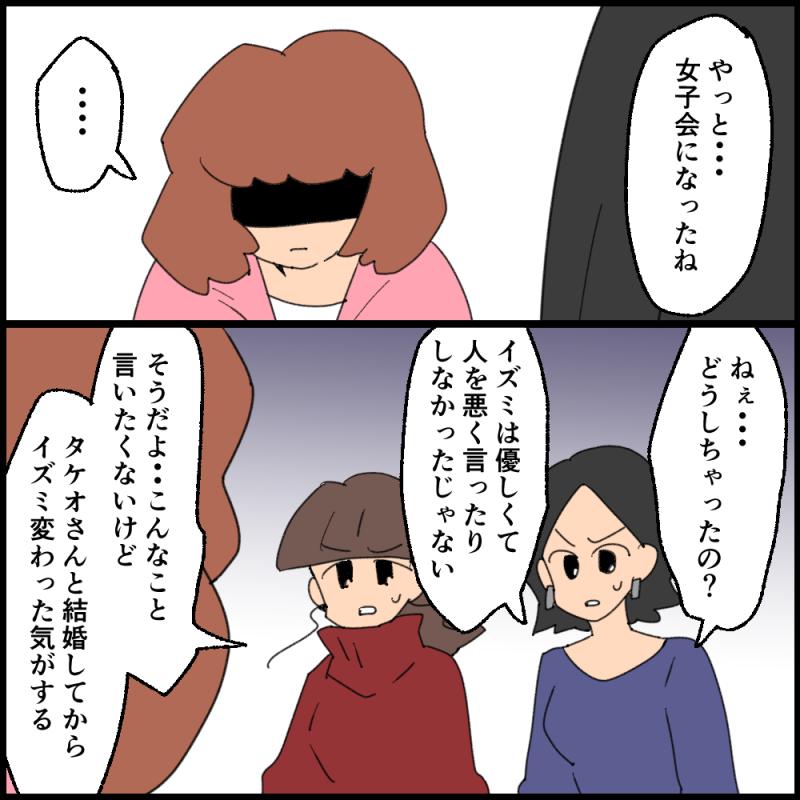 しかし友人の一人イズミは度々連絡なしに自分の夫を女子会に連れてきます…。