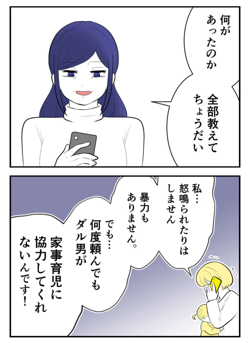 その態度に限界を迎えた妻は、「お義母さんから注意してもらおう」と義母に連絡を入れる。