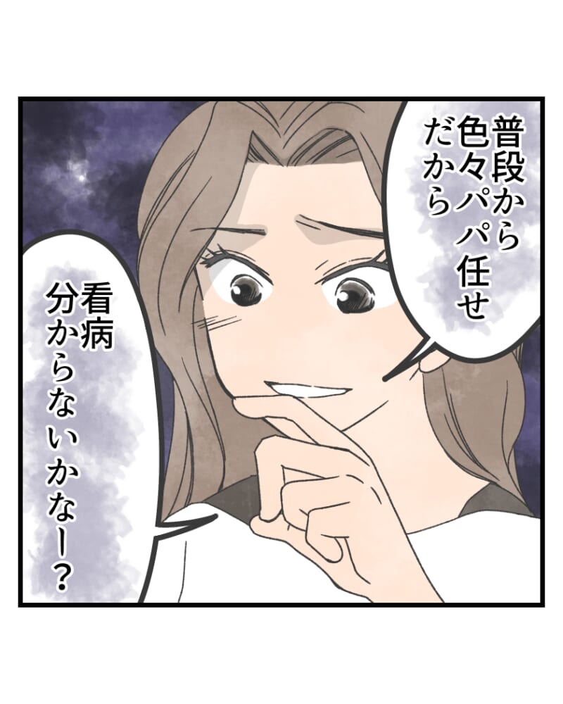 <広告> 「パパ任せだから分からない?」笑う3児ママ…直後、高熱の娘を診た先生の表情が変わる【そのアドバイス誰のためですか?#14】by りんりん ‹ 前の話 一覧 りんりん ‹12› 2026/04/29 <広告> ‹12› 【そのアドバイス誰のためですか?】 ▶ 他の話も読む ★フォローしてりんりんさんの最新記事をチェック! ‹ 前の話 一覧 作者: りんりん > 作者ページ > SNS りんりんさんの電子書籍 そのアドバイス誰のためですか? 看病センスゼロ夫との攻防 りんりんさんの他のシリーズを読む 看病センスゼロ夫との攻防 ママ, ママ友, 働くママ そのアドバイス誰のためですか?, りんりん <広告> 本記事は個人的体験談などに基づいて作成されており、脚色なども加えられている場合もあり、必ずしも各読者の状況にあてはまるとは限りません。この記事の情報を用いて行動される場合、ご自身の責任と判断により対応いただけますようお願い致します。 尚、記事に不適切な内容が含まれている場合はこちらからご連絡ください。 関連記事 関連記事: 「私のほうが気疲れしてる」ゲーム三昧の時短妻に、夫が切り出した提案は【未熟な夫婦の不協和音 #33】 by ぴん 関連記事: 「人として教えなおす!」ワンオペ限界で義母に泣きつくと…翌日、帰宅した夫に激震【私の義母が神すぎる! #14】 by 尾持トモ 関連記事: 「産婦人科に行くなんて言えない…」彼に知られたくない理由とは【16歳、命と向き合うとき #43】by ふくふく 関連記事: 「お金を貯めて離婚したい…」夫に限界の妻、復帰連絡で副院長から“想定外の打診”【専業主婦だけど、食い尽くし夫と離婚します #16】 by しろみ 関連記事: 「老眼だろ、お茶淹れろ」ナメた社員の命令に年配パートが黙って出した“お茶の正体”【自称・いい男の恋活♡事情 #5】by ちゅん 関連記事: 慌ただしい三つ子の入院。ふと気が付いた”あること”【まさかの三つ子入院⑥】 by ちょここ 関連記事: 言い放ってしまった禁断の言葉【1歳半健診の憂鬱③~保健師さんとのお話~】 by ポンコツママ 関連記事: 謝罪訪問で相手のママから言われた言葉は…【まさか我が子が加害者に!?ママ友とのトラブル話③】 by つきママ 関連記事: 「私が何かしたのなら謝る」と伝えると...「法務教官になりたかった」第4話-さよならの理由① by koto 関連記事: 『凶器』滑り台で子供の代わりに滑ってきたものは…【こんなはずでは系育児】第11話-穴が空いた② by chiiko